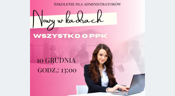 Zapraszamy na bezpłatne szkolenie dla pracodawców oraz pracowników wyznaczonych do obsługi PPK, 10 grudnia o godzinie 13:00.